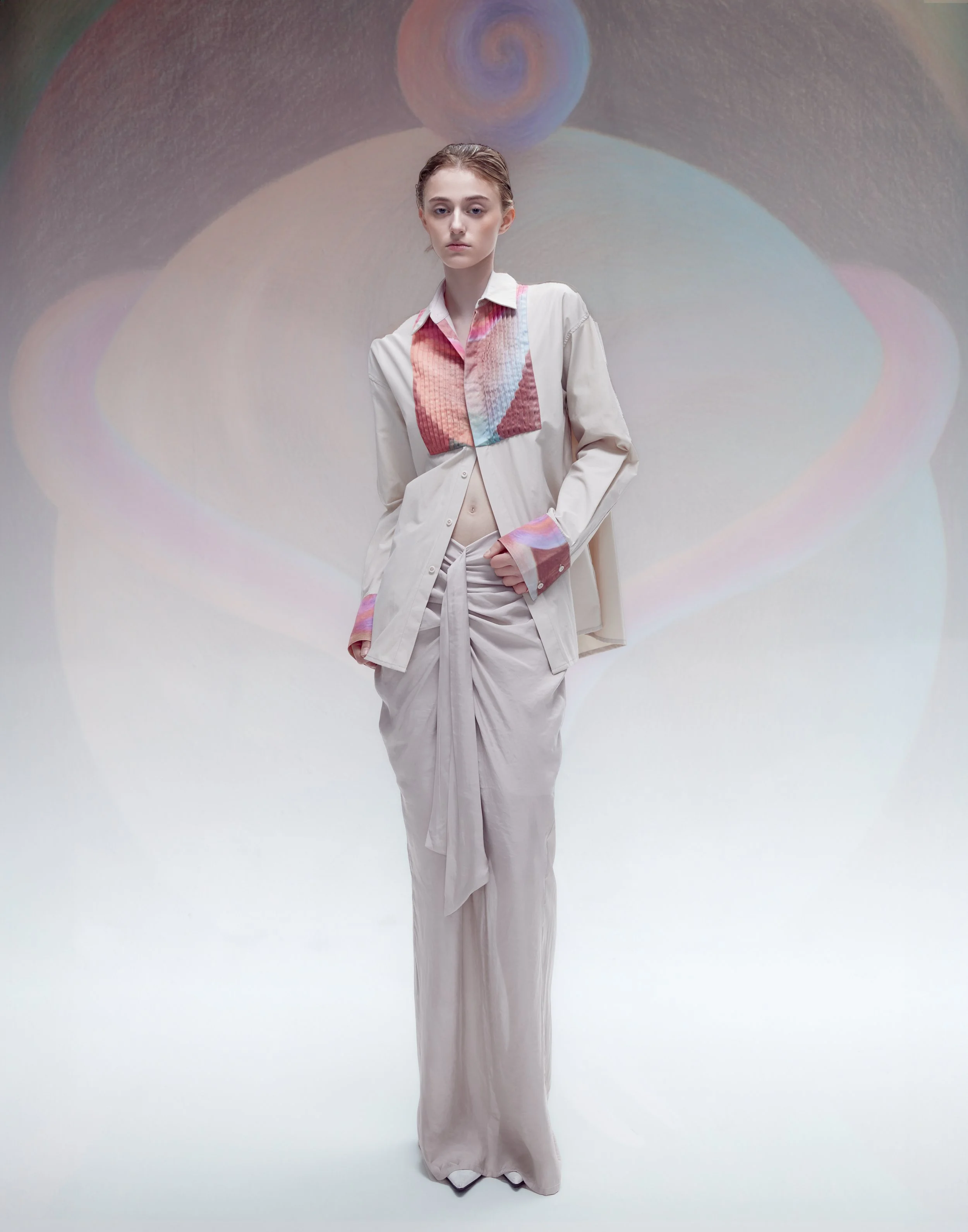 “Orchid” Pleated Cotton Long-Sleeved Shirt